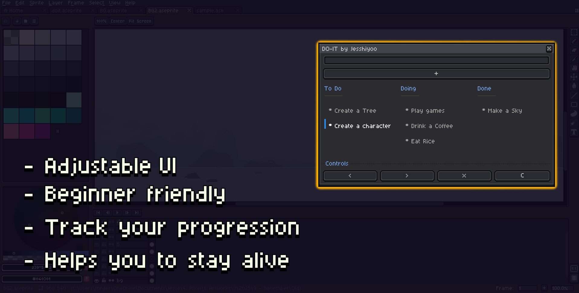 Solution: List your tasks inside the Aseprite - focus until you're done.