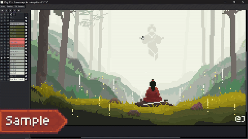 Aseprite extension that shows the layer you’re currently working on in a highly noticeable way.